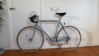 Bicicleta de carretera clásica en color azul, ideal para coleccionistas o para disfrutar de paseos. - Cuadro de acero. - Ruedas de 700c. - Manillar de carretera.