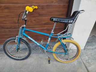 Se vende bicicleta clásica Bicicross BH en color azul. Un modelo icónico para coleccionistas o para revivir la nostalgia. - Manillar y puños amarillos. - Sillín negro con logo BICICROSS-BH. - Ruedas de 20 pulgadas. - Guardabarros delantero y trasero.