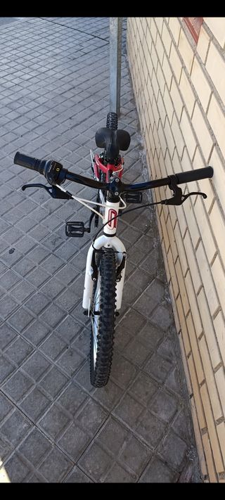 Cuadro Aluminio Oversize, Geometría Infantil, Dirección 1-1 /1.8 y Punteras de Aluminio Horquilla Rígida Pedalier cromo Piñón 6 Velocidades Cadena Kmc HV410 Ruedas Aluminio 20", Bujes WRC-800, con Tuerca Cubiertas Rubena Ocelot, 20x2.0 Manetas de Freno Aluminio, infantil de corto alcance y tacto suave Frenos V-Brake, Aluminio Dirección Acero, 28.6x34x30 Manillar Aluminio, Doble Altura Potencia A-Head, Aluminio Tija 27.2x200mm Sillín Racing Junior Pedales Nylon con rodamientos y Reflectores. Color blanco negro y rojo. No se envía, solo entrega en mano en Zaragoza capital. Precio negociable. Gracias.
