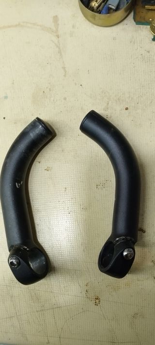 Cuernos para manillar de bicicleta de montaña de la marca Bontrager. Fabricados en aluminio negro. - Diseño ergonómico. - Logotipo de Bontrager visible.