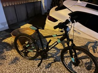 Bicicleta MTB Rockrider 700 – frenos de disco Vendo bicicleta Rockrider 700 (Decathlon) en buen estado. Ideal para ciudad, caminos de tierra y montaña ligera. Características: • Cuadro de aluminio • Ruedas de 26” • Frenos de disco (mejor frenada que zapatas) • Suspensión delantera • Cambios con 3 platos (sube cuestas sin problema) • Dirección ahead (estable y segura) • Potencia cambiada para mas altura en el manillar Bici cuidada, funciona correctamente y lista para usar. Perfecta para empezar o como bici para el día a día. Precio negociable Entrega en mano