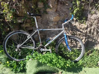 Bicicleta de montaña clásica de los años 90 recién puesta apunto y repasada... manillar y potencia recién pintada... neumático delantero nuevo..ruedas repasadas y derechas...es usada(evidentemente) pero está en perfecto estado...NO MAREANTES... gracias - Cuadro de color azul. - Componentes Shimano. - Marca Lorain.
