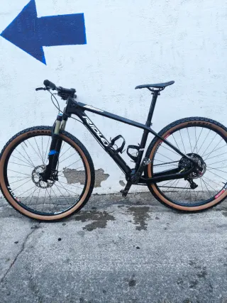 La bici ha estado tiempo parada y necesita un pequeño mantenimiento (poner líquido a los frenos y remachar el portabidón). Es una buena opción para iniciarse con una MTB de calidad. Características: Modelo: Ridely Ignite C10. Talla M Cuadro de carbono, incluidas las bielas que tmb lo son. Ruedas 29" hechas a la carta por Kasperwheels. Bujes FRM - Venus Grupo SRAM Suspensión Fox 21 Frenos Shimano XT Manillar, potencia, tija, sillín de carbono (+20€). El cuadro es muy ligero, lo que también la convierte en una buena base para transformarla en gravel con una horquilla rígida.