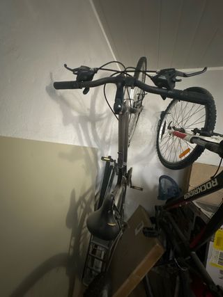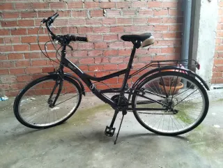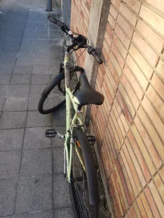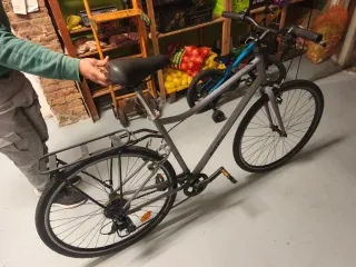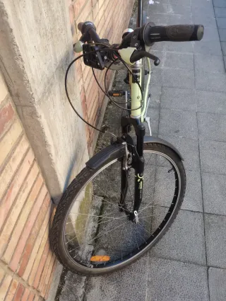 Bicicleta de paseo Btwin Elops 1, ideal para desplazamientos urbanos. Recien puesto a punto en tienda hace 1 mes. Todo funciona perfectamente. He cambiado el manillar para que quepa en el ascensor. -Cambio Shimano de 5 velocidades - Cuadro de aluminio. - Ruedas de 26 pulgadas. - Frenos V-brake. - Sillín cómodo. - Guardabarros delantero y trasero. Solo venta en persona en Valencia ciudad.