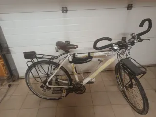 Bicicleta STONGMAN 7000 de aluminio para adulto. Ideal para paseos y rutas. - Cuadro de aluminio. - Ruedas de 26 pulgadas. - Frenos de disco. - Cambio Shimano. - Sillín ajustable. - Portabultos trasero.Portabidon, calapies, manillar aerodinámico, cambios de palanca. Triangulo para complementos