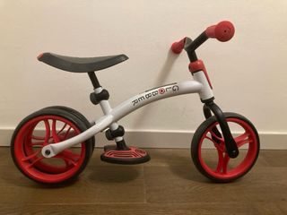 Bicicleta de aprendizaje Globber en color blanco y rojo. Ideal para los primeros paseos. - Diseño de 3 ruedas. - Ruedas de goma. - Manillar con puños de goma.