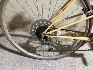 Bicicleta clásica Zeus, ideal para paseo o convertir en fixie fixy fixed retro Componentes nuevos. Con cables para cortar para terminar de ajustar al 100%. Muy cuidada. - Cuadro de acero. - Ruedas de 700c con cubiertas beige. - Manillar de carretera con puños marrones. - Frenos de varilla. - Cambio de marchas visible.