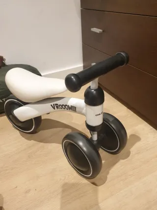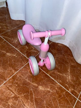 Bicicleta de aprendizaje para bebés en color rosa. Ideal para los primeros paseos. - Diseño de tres ruedas. - Manillar con puños de goma. - Asiento acolchado. Esta nuevo, fue un regalo de reyes pero la queda pequeño.