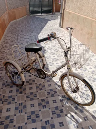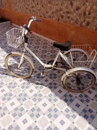 Bicicleta triciclo de tres ruedas, ideal para paseos o transporte. y 3 ruedas nuevas - Color blanco. - Cestas delantera y trasera para almacenamiento. - Timbre en el manillar.