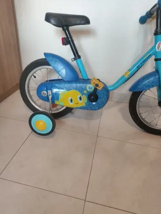 Bicicleta infantil azul con ruedines