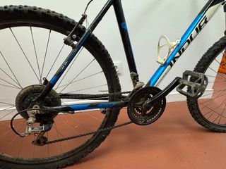 Bicicleta de montaña de la marca INDUR. Bicicleta marca INDUR de montaña ideal para uso urbano y caminos de tierra. Cuenta con horquilla de suspensión delantera, manillar ancho Zoom, frenos en buen estado y ruedas con cubiertas de tacos para mayor agarre. Estructura resistente, cambios suaves y conducción cómoda. Presenta signos normales de uso, pero funciona correctamente y está lista para rodar. Ideal para desplazamientos diarios, paseos o iniciarse en MTB.