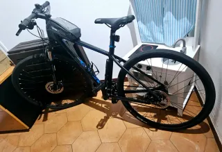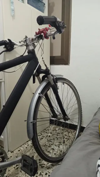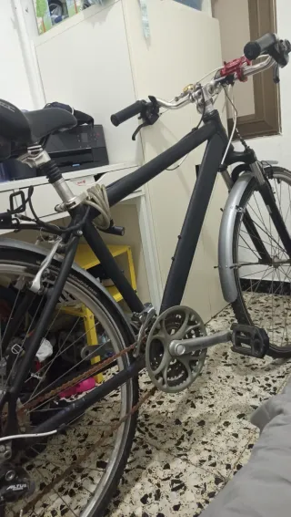Vendo bicicleta B’Twin Riverside 500, ideal para ciudad, paseos y caminos. Es una bici híbrida, muy cómoda y versátil, perfecta tanto para uso diario como para rutas de fin de semana. Características: • Cuadro de aluminio 6061 (ligera y resistente) • Transmisión 3×8 velocidades (24v) • Freno de disco delantero + V-brake trasero • Ruedas 700c con cubiertas mixtas • Horquilla con suspensión para mayor comodidad • Manillar plano y postura cómoda • Portabidón incluido La bici está en buen estado general y lista para usar. Ha sido cuidada y funciona perfectamente. La vendo porque no la estoy usando.