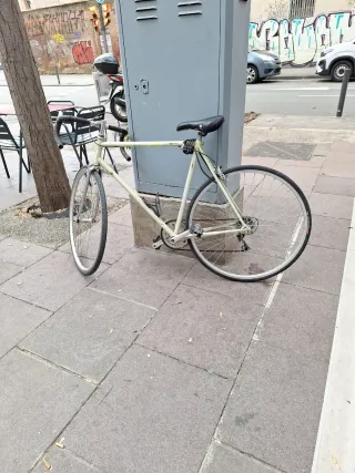 Bicicleta de carretera de estilo vintage, ideal para paseos urbanos o como proyecto de restauración. - Cuadro de color crema. - Ruedas de 700c. - Sillín negro. - Manillar de carretera.