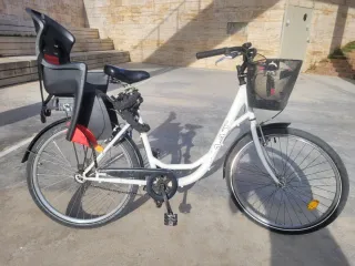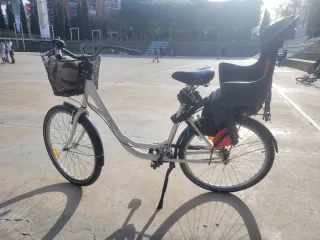 Bicicleta paseo con silla y cesta