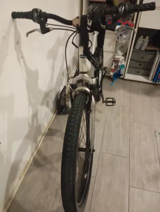 Bicicleta de paseo en buen estado, lista para usar. El freno de atrás hay que hacerle un ajuste - Manillar plateado. - Puños negros. - Frenos. - Rueda delantera.