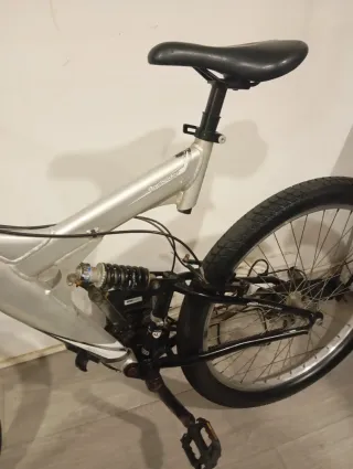 Bicicleta de montaña en color plateado. Ideal para paseos y desplazamientos.Tiene las ruedas nuevas recién cambiadas - Manillar curvo. - Rueda delantera ancha. - Pedales negros.