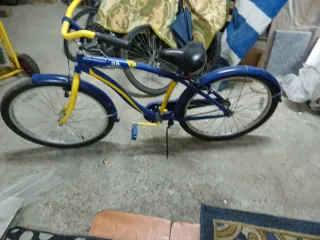 Bicicleta de paseo azul y amarilla