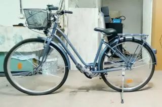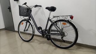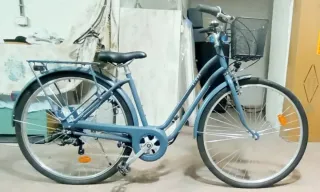 Bicicleta de paseo B’Twin – buen estado Vendo bicicleta de paseo B’Twin, perfecta para moverse por la ciudad de forma cómoda y práctica. Funciona bien y está lista para usar. Características: • Cuadro cómodo tipo citybike • Manillar amplio y ergonómico • Ruedas de 26” • Luz delantera incluida • Portabultos trasero • Frenos V-Brake • Patilla de apoyo • Neumáticos en buen estado Tiene marcas de uso normales pero nada que afecte al funcionamiento. Ideal para desplazamientos diarios o paseos tranquilos. Precio: 60€ (no negociable) Entrega en mano.