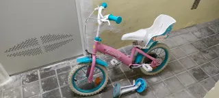 Bicicleta infantil de color rosa, ideal para los primeros paseos. - Manillar y sillín ajustables. - Ruedines incluidos para mayor estabilidad. - Diseño con detalles de fantasía.