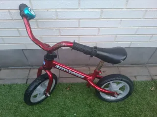 Bicicleta de equilibrio Chicco en color rojo, ideal para los primeros paseos. - Marco de metal resistente. - Asiento ajustable. - Ruedas de goma. La bicicleta de aprendizaje sin pedales ayuda a aprender a andar en bicicleta y facilita el paso a una bicicleta con pedales de verdad. Realizada en metal ultraligero, tiene el manillar y el sillín regulables en altura para adaptarse al tamaño del niño. Recomendada para 3/4 años. Hasta 25 kg. Está en perfecto estado con marcas de uso