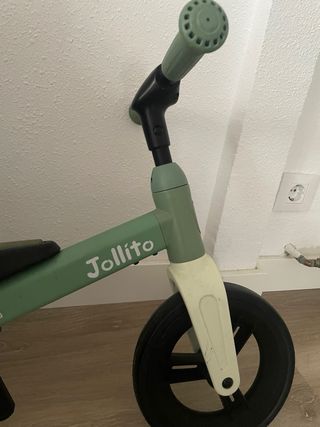 Bicicleta de aprendizaje Jollito en color verde. Ideal para los primeros paseos. - Diseño ligero y ergonómico. - Ruedas de goma. - Manillar ajustable.