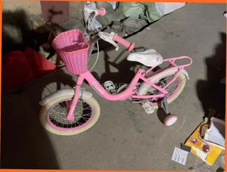 Bonita bicicleta infantil my Dream en color rosa con ruedas de 12" Bici en muy buen estado general, revisada y lista para que tu peque se sienta muy bién dando lindos paseos. - Incluye ruedines para mayor estabilidad. - Cesta delantera y parrilla trasera. - Sillín y manillar ajustables. - Guardabarros delantero y trasero. - válida niñas 2-4años.