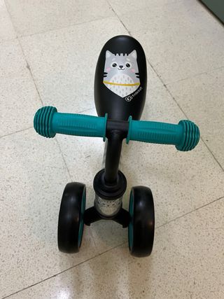 Triciclo de aprendizaje con diseño de gatito. - Manillar con puños de goma para un mejor agarre. - Asiento ergonómico con estampado de gatito. - Ruedas de goma para un paseo suave. - Estructura de metal resistente.