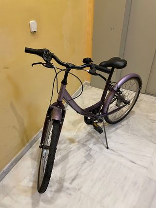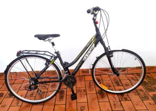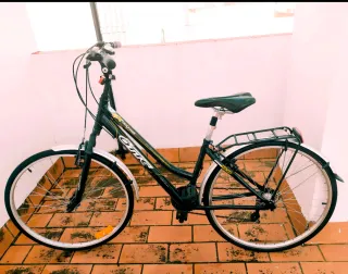 Bicicleta de paseo en buen estado, ideal para moverse por la ciudad. - Cuadro resistente. - Sillín cómodo. - Portabultos trasero. - Guardabarros. - Luz trasera roja. Repuestos de frenos Manillar de repuesto