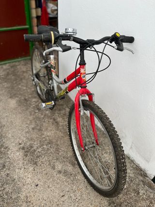 Bicicleta de montaña de color rojo, ideal para paseos y rutas. - Cuadro de metal. - Ruedas todoterreno. - Manillar de bicicleta. - Sillín negro.