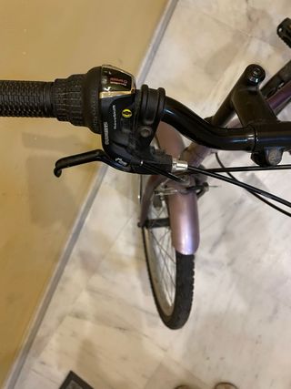 Bicicleta morada de 24 pulgadas. - Ruedas de 24 pulgadas. - Color morado. -Montado en maraca Shimano -6 piñones -Monoplato -Algún desgaste del uso, pero muy bien cuidada -Sillín y manillar regulable Bicicleta de paseo adulto, para niño o niña perfecta para reyes o navidad. Se entrega en Nervión, sevilla