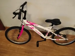 Bicicleta infantil DENBIKE, ideal para los primeros paseos. - Cuadro de color blanco con detalles en rosa. - Ruedas de 20 pulgadas. - Sillín negro. - Manillar negro.