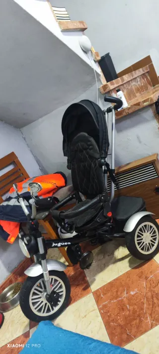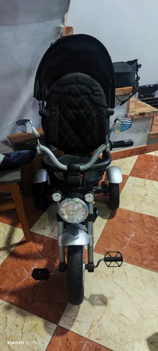 Triciclo infantil con diseño moderno y seguro. - Asiento acolchado y reclinable. - Barra de empuje para padres. - Reposapiés. - Capota para el sol. - Ruedas resistentes. Se vende triciclo de bebe, de 9 meses a 6 años, totalmente nuevo, usado sólo 2 veces, me costó 159€, chasis sin arañazos, tela resistente, con luz y sonido, manillar de paseo ajustable, bolsa de almacenamiento, posa vasos, capota con red para ver al niño, asiento giratorio y respaldo reclinable, por si se duerme el niño, reposapiés, ruedas duras, pedales para llevar el niño el triciclo o sin movimiento, todo completamente nuevo, regalo bolso de triciclo, preguntar