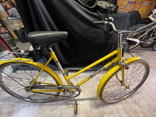 Bicicleta de color amarillo, ideal para paseos. - Cuadro de bicicleta. - Sillín negro. - Manillar negro. - Ruedas con banda de rodadura. escucho oferta