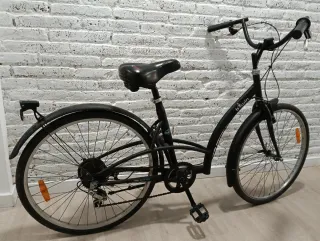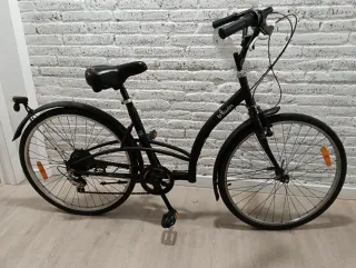 Bicicleta de paseo en color negro, ideal para desplazamientos urbanos. - Cuadro de diseño curvo. - Ruedas de 28 pulgadas. - Guardabarros delantero y trasero. - Sillín negro. - Manillar con puños negros.