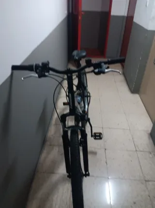 Bicicleta de montaña en color negro. Ideal para paseos y rutas. Con suspensión. Perfecta. - bicicleta perfecta, sin a penas usarse. Funciona todo a la perfeccion - Me costó 290e y esta nueva Lleva hechos 20 km Con kit de luz y accesorio subir manillar, y además revisión y puesta a punto pasada en tienda. No envío, lo entrego en mano.