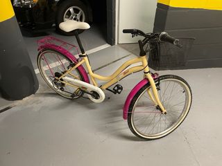 Bicicleta infantil de paseo en muy buen estado. Es de color rosa y blanca, con detalles en color fucsia. - con marchas. - tiene ruedas de 20 pulgadas. - Incluye un portaobjetos en el manillar. - Dispone de guardabarros. - Se puede ver en Zaragoza o en Burgos.