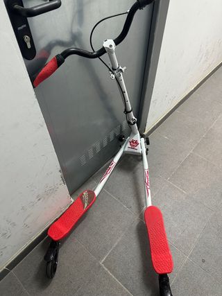 Patinete doble Ride Trike, ideal para deslizarse y divertirse. Es plegable para facilitar su transporte y almacenamiento. - Diseño de doble plataforma. - Manillar ajustable. - Ruedas resistentes. - Poco uso, esta como nuevo.