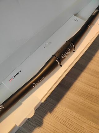 Manillar de carbono OnOff Helium 0.0 totalmente nuevo. Diámetro manillar: 31.8mm Elevación: 0mm Upsweep: 0° Backsweep: 6.5° Largo: 750mm *NO tengo interés en cambios