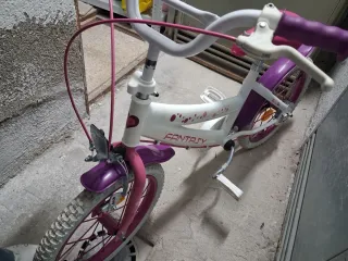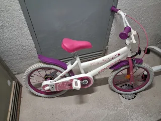 Bicicleta infantil Monty de 16 pulgadas, ideal para los más pequeños. - Color rosa y blanco. Pintada por mi porque era verde y roja. - Sillín blanco con detalles. - Timbre rosa en el manillar. - Frenos cantilever Funciona a la perfección, la vendo por qué a la niña se la ha quedado pequeña. (Si hacen falta regalo los ruedines)