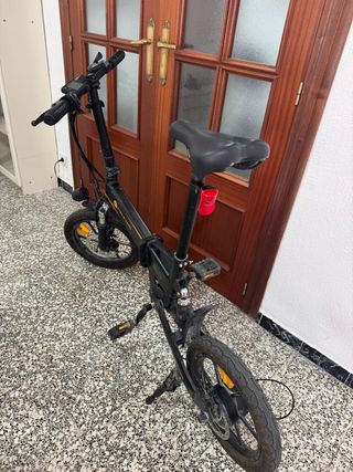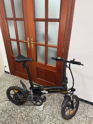 Bicicleta eléctrica plegable en color negro. Ideal para desplazamientos urbanos y fácil de guardar. Le funciona todo, frenos a disco, bocina, luces, cubiertas en buen estado. Se vende por viaje. - Diseño plegable. - Ruedas pequeñas para mayor maniobrabilidad. - Sillín ajustable en altura. - Manillar con pantalla de información.