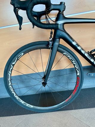 Bicicleta de carretera Trek Émonda SL6 en color negro mate - Talla 54 - Cuadro de carbono 500 OCLV - Llantas carbono Campagnolo Bora one - Montada en Shimano Ultegra - Sillin Bontrager Verse comp - Potencia y manillar Bontrager. Cinta recien cambiada - Zapatas DTSwiss con menos de un mes Puesta a punto y lista para todar