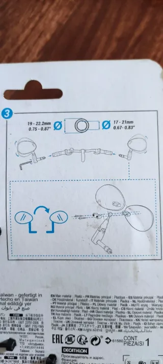 Espejo retrovisor para bicicleta. - Montaje en manillar. - Diseño ovalado. - Marca Decathlon.