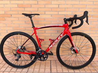 Bicicleta de carretera Ridley en perfecto estado. Revisada en mayo de 2025, cambio de rodamientos y cableado, fundas, manillar plano, cinta de manillar, pastillas de freno, casete 10-32 nuevo, cadena y pedales, todo cambiado junto a la revisión. - Cuadro de carbono. - Frenos de disco Shimano Ultegra - Cubiertas Pirelli P Zero. (Tubeless) -Ruedas de aluminio Mavic ( delantera a estrenar) - Transmisión Shimano Ultegra -Bielas FSA con platos compac 50-34