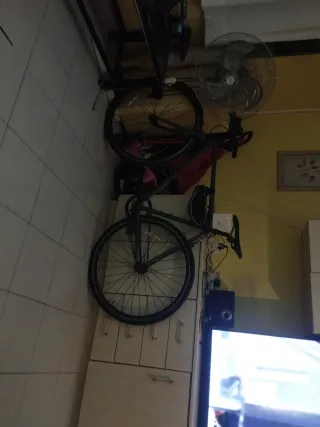 Bicicleta de carretera comprada en Decathlon, modelo TRIBAN 500. Cuadro de aluminio talla M, ruedas de 700 ( 28 pulgadas). Transmisión de 3 platos y 8 piñones. Funciona de maravilla, y está revisada recientemente en taller. Funda de manillar nueva.