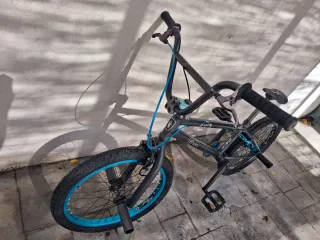 Bicicleta BMX Btwin X-Up en color azul. Apenas usada. Diseñada para la práctica de BMX. - Cuadro resistente. - Ruedas de 20 pulgadas. - Manillar de 360 grados.