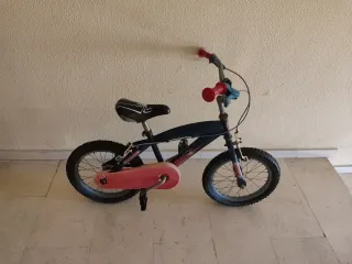 Bicicleta infantil con diseño de Spiderman. Ideal para los más pequeños. - Cuadro de color rojo. - Ruedas de color rojo y azul. - Puños de manillar azules. - Guardabarros trasero azul. - Diseño de Spiderman en el guardabarros y la cadena. * APARTE LLEVA LOS RUEDINES QUE TAMBIEN LOS TENGO*