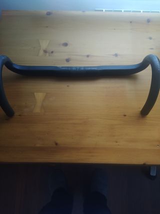 Manillar carretera Marca Orbea, procede de una Orca.Tiene 3 salidas o 4, lo quite al realizar biomecánica. Ancho 440mm Reach 80 Drop 125