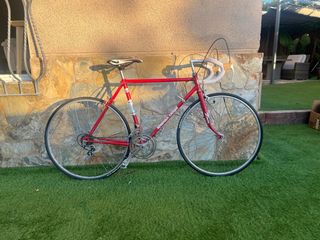 Bicicleta de carretera clásica vintage, perfecta para eventos tipo Eroica o para moverte con estilo. Conserva el encanto retro con varios componentes originales. 🚴♂️ Marca: Rabasa Derbi 📍 Origen: España 📆 Años 80 (aproximadamente) ⚙️ Cambio de marchas trasero y delantero (funcional) 🛞 Ruedas de 700c con neumáticos Michelin Dynamic Sport 🪛 Cuadro de acero ligero 📏 Talla aprox. 56-58 (recomendado para personas entre 1,70 y 1,80) 🪑 Sillín deportivo moderno 👁️ Cinta de manillar nueva (blanca perforada) 🛠️ Frenos Weimann 🔧 En buen estado general y lista para rodar