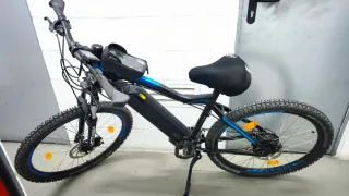 Bicicleta eléctrica NCM con un diseño moderno en color negro y detalles azules. - Cuadro robusto. - Ruedas todoterreno. - Sillín cómodo. - Bolsa de manillar incluida. -Pocos km, sólo 420 sin golpes, en perfecto estado lista para usar. - Con factura dé compra. - Vendo por poco uso.