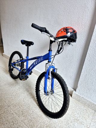 Bicicleta infantil BH de 20 pulgadas en color azul, con supension delantera y cambio de marchas. incluye el casco. 🏷 Marca: BH 👌🏻 En perfecto estado menos por un pomo del manillar, que la parte del final esta desgastada, pero puede cambiarse. 🧊Calidad: 9/10 (por el pomo) 🎨Color: Azul 🔖 Tamaño: 20” (Pulgadas) 💰Precio en tienda: +150€ ‼️Si teneis alguna duda, preguntar sin problema)